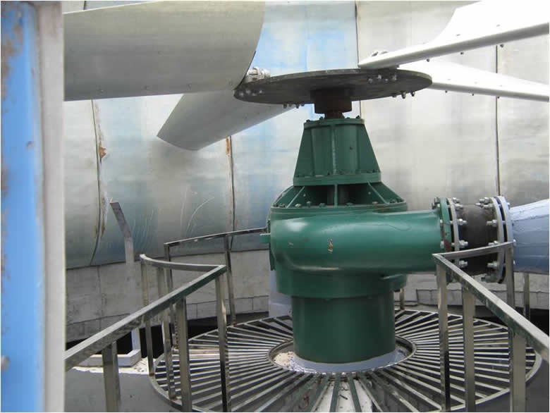 水輪機(jī)設(shè)計(jì)嚴(yán)謹(jǐn), 結(jié)構(gòu)合理,運(yùn)轉(zhuǎn)平穩(wěn),可靠性高,根本上杜絕了電機(jī)、電控和減速機(jī)漏電、漏油、燒毀和損壞的故障,為安全持續(xù)運(yùn)行提供了保證水輪機(jī)重量小于取消的電機(jī)、減速機(jī)二者之和,從而使冷卻塔重心下移,增加了運(yùn)行環(huán)境安全性; 可在任何需防爆的環(huán)境下安全運(yùn)行。